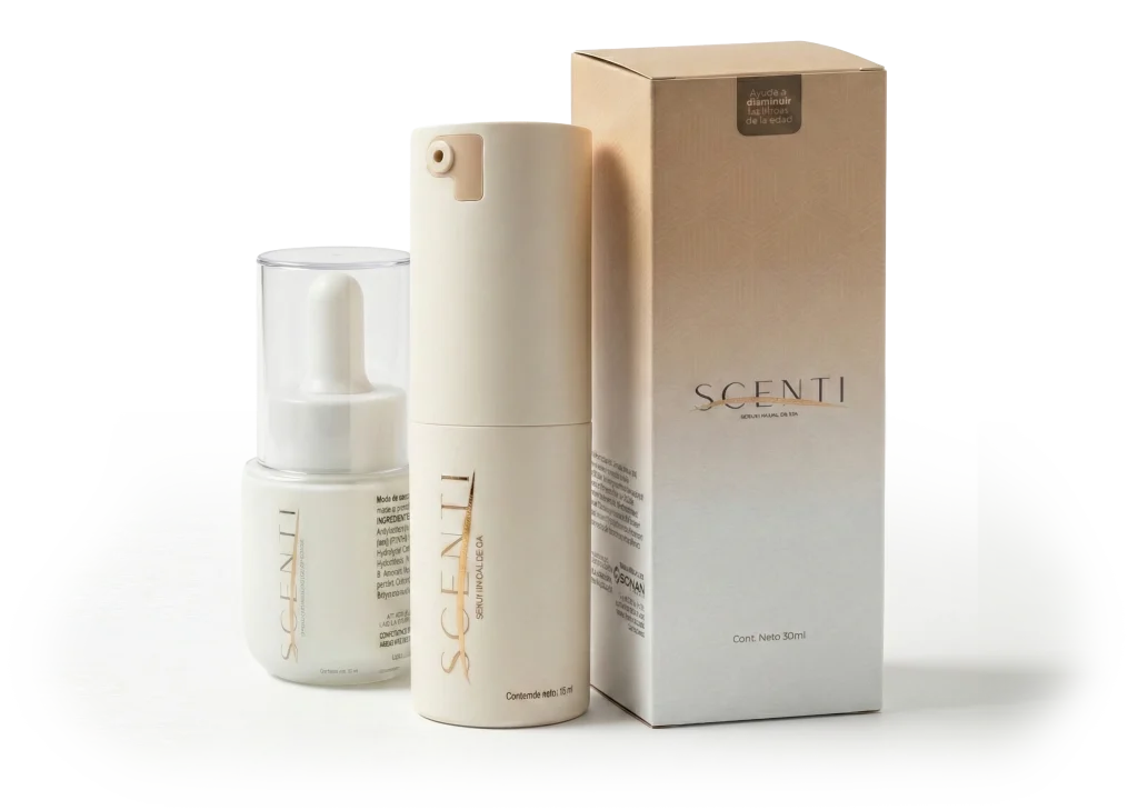 Sí, están diseñados para complementarse. Scenti Día es un suero ligero de rápida absorción que protege e hidrata sin sensación grasa. Scenti Noche es una formulación más profunda y oleosa (con colágeno y hialuronato) diseñada para apoyar la reparación y firmeza durante el descanso.